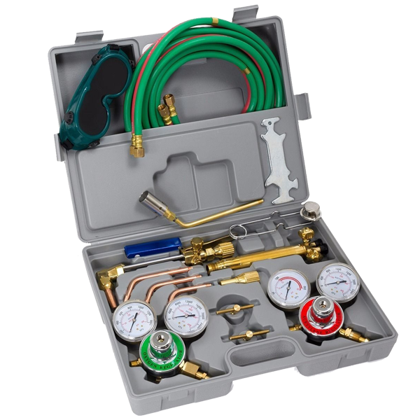 El Equipo para Soldar y Cortar Harris – ECSHW permite realizar trabajos de soldadura, corte, calentamiento y mantenimiento industrial. Incluye antorcha, manguera, reguladores y accesorios Harris.