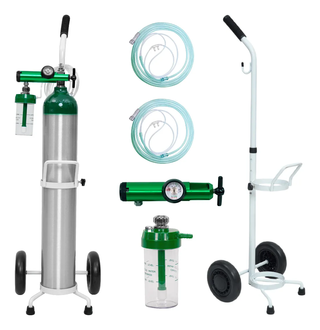 El Kit Medicinal con Carrito, Regulador y Cilindro Tipo E es ideal para clínicas, hospitales, ambulancias y atención domiciliaria. Incluye un cilindro tipo “E”, regulador médico, cánula, vaso humidificador y carrito transportador para uso rápido y seguro.